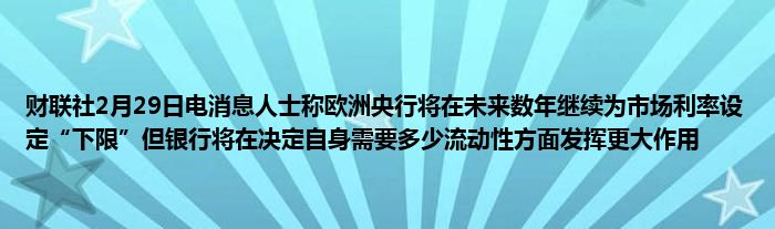 今天【财联社2月29日电消息人士称欧洲央行将在未来数年继续为市场利率设定“下限”但银行将在决定自身需要多少流动性方面发挥更大作用】登上了全网热搜,那么【财联社2月29日电消息人士称欧洲央行将在未来数年继续为市场利率设定“下限”但银行将在决定自身需要多少流动性方面发挥更大作用】具体的是什么情况呢,下面大家可以一起来看看具体都是怎么回事吧!