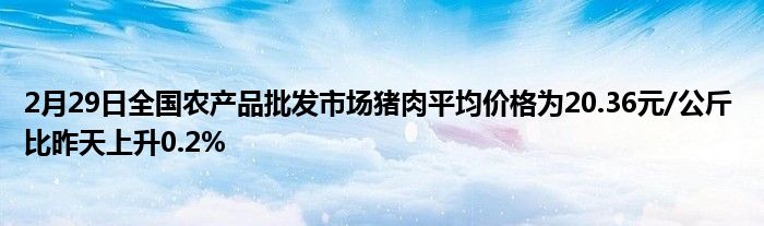 2月29日全国农产品批发市场猪肉平均价格为20.36元/公斤 比昨天上升0.2%
