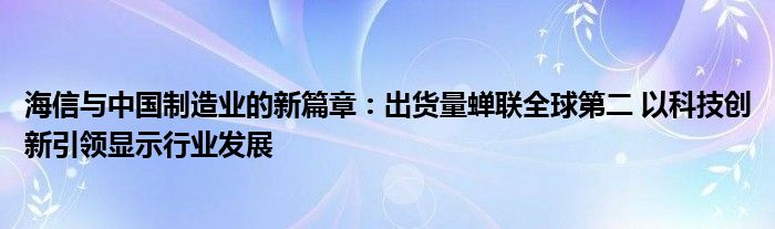 海信与中国制造业的新篇章:出货量蝉联全球第二 以科技创新引领显示行业发展