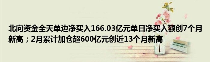 北向资金全天单边净买入166.03亿元单日净买入额创7个月新高;2月累计加仓超600亿元创近13个月新高
