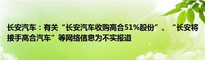 长安汽车:有关“长安汽车收购高合51%股份”、“长安将接手高合汽车”等网络信息为不实报道