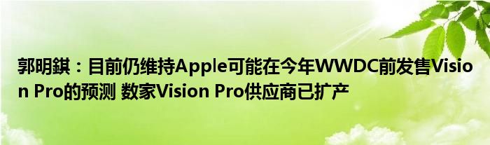 郭明錤:目前仍维持Apple可能在今年WWDC前发售Vision Pro的预测 数家Vision Pro供应商已扩产