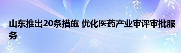 山东推出20条措施 优化医药产业审评审批服务