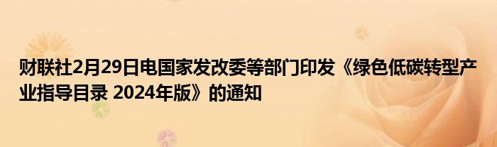 财联社2月29日电国家发改委等部门印发《绿色低碳转型产业指导目录 2024年版》的通知