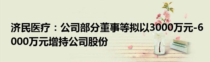 济民医疗:公司部分董事等拟以3000万元-6000万元增持公司股份