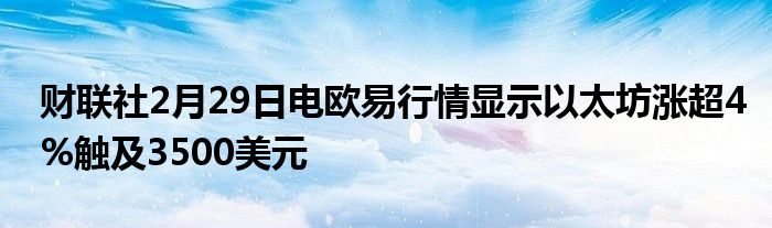 财联社2月29日电欧易行情显示以太坊涨超4%触及3500美元