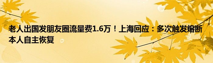 老人出国发朋友圈流量费1.6万!上海回应:多次触发熔断 本人自主恢复