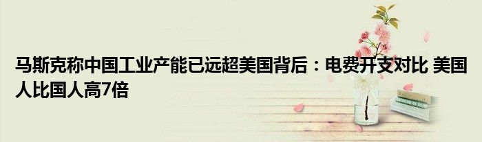 马斯克称中国工业产能已远超美国背后:电费开支对比 美国人比国人高7倍