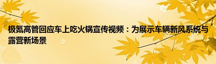 极氪高管回应车上吃火锅宣传视频:为展示车辆新风系统与露营新场景