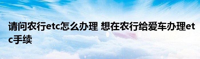 请问农行etc怎么办理(想在农行给爱车办理etc手续)