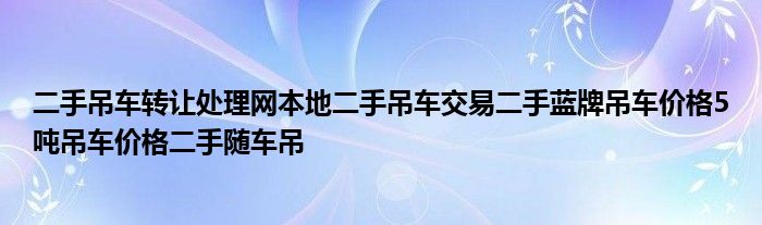 关于二手吊车转让处理网、本地二手吊车交易、二手蓝牌吊车价格、5吨吊车价格以及二手随车吊的价格,具体信息可能因地区、品牌、型号、年份等因素而有所不同。以下是一些大致的价格参考: