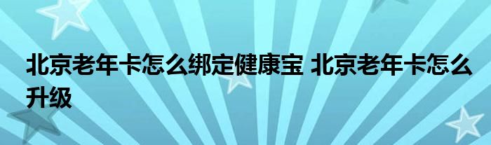 北京老年卡怎么绑定健康宝 北京老年卡怎么升级