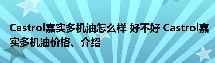 Castrol嘉实多机油怎么样 好不好 Castrol嘉实多机油价格、介绍