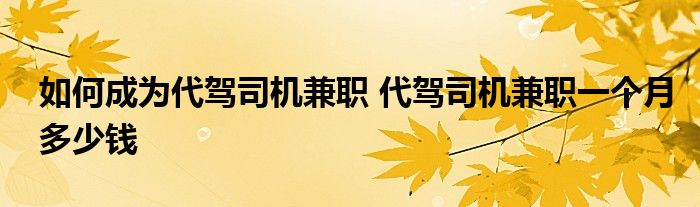 如何成为代驾司机兼职 代驾司机兼职一个月多少钱