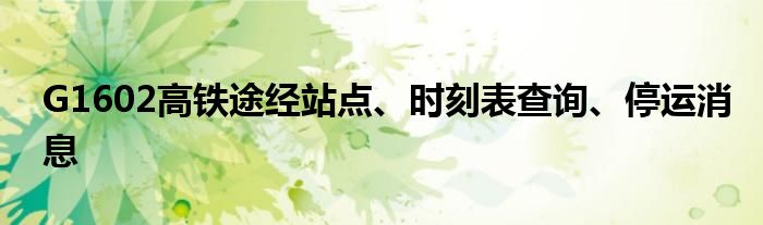 关于G1602高铁途经站点和时刻表查询,以及停运消息,以下是相关信息: