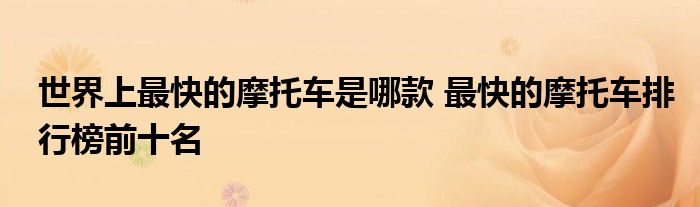 根据我所掌握的知识,目前无法给出关于世界上最快的摩托车是哪款的确切答案,因为技术和市场在不断发展和变化,各种品牌和型号的摩托车都在不断刷新速度记录。