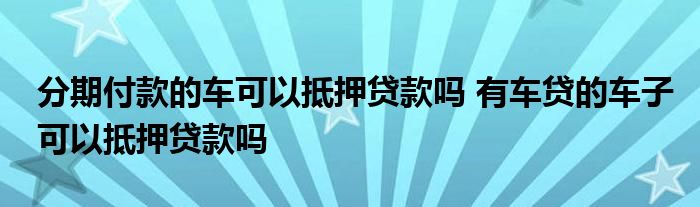 分期付款的车可以抵押贷款吗 有车贷的车子可以抵押贷款吗