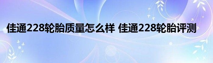 佳通轮胎是一家知名的轮胎制造商,其生产的轮胎在市场上有着广泛的应用。关于佳通228轮胎的质量,可以参考以下评价: