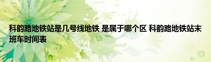 科韵路地铁站是几号线地铁 是属于哪个区 科韵路地铁站末班车时间表