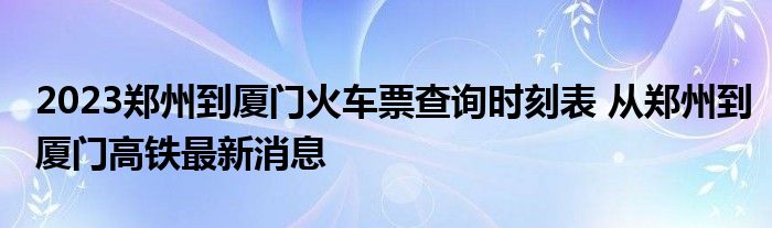 2023郑州到厦门火车票查询时刻表 从郑州到厦门高铁最新消息