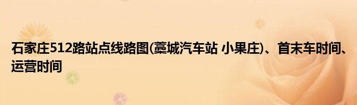 石家庄512路公交车连接了藁城汽车站和小果庄,途经多个站点。以下是详细的站点线路图、首末车时间及运营时间: