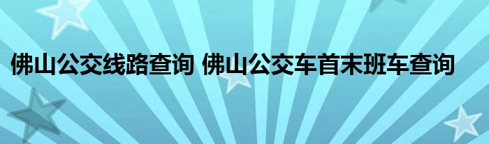 您可以通过以下途径查询佛山公交线路及公交车首末班车时间: