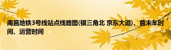 南昌地铁3号线的站点线路图包括银三角北站和京东大道站,以下是详细的站点线路信息、首末车时间以及运营时间: