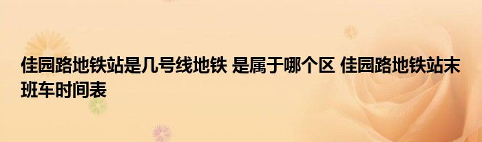 佳园路地铁站是几号线地铁 是属于哪个区 佳园路地铁站末班车时间表