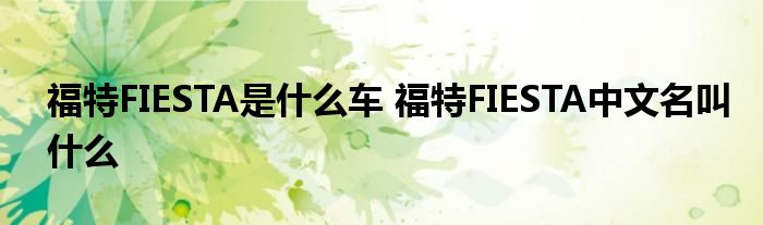 福特FIESTA是什么车 福特FIESTA中文名叫什么