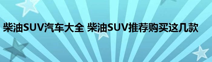 柴油SUV汽车大全 柴油SUV推荐购买这几款