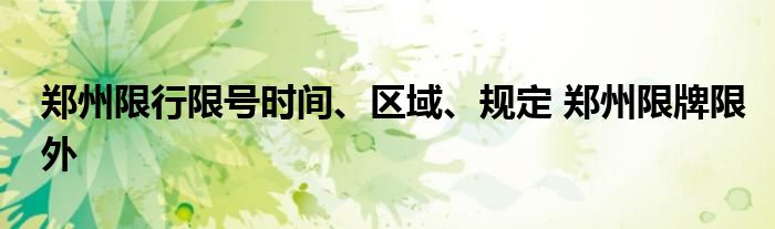 郑州市限行限号相关规定主要包括时间和区域限制。具体规定如下: