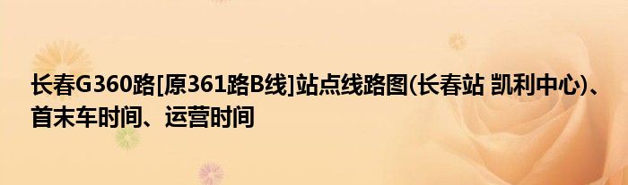 长春G360路[原361路B线]站点线路图(长春站 凯利中心)、首末车时间、运营时间