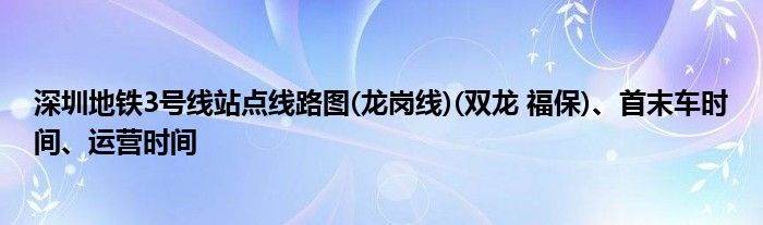 深圳地铁3号线站点线路图(龙岗线)(双龙 福保)、首末车时间、运营时间