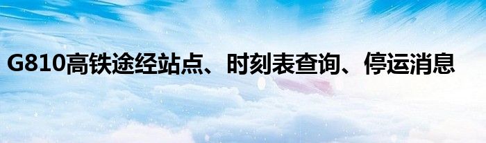 关于G810高铁的途经站点、时刻表查询及停运消息,可通过访问铁路局官网或中国铁路客户服务中心网站进行查询,同时也可以下载一些相关的交通出行软件以获取最新信息。以下是G810高铁的相关信息: