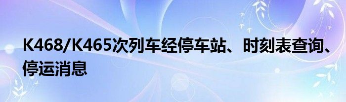 关于K468/K465次列车经停车站、时刻表查询和停运消息,以下为您提供相关信息: