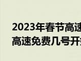 根据国家法定节假日安排和《重大节假日免收小型客车通行费实施方案》,2023年春节高速公路免费时间为:1月21日零时至1月27日24时,共计七天 浏览全文>>