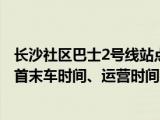 长沙社区巴士2号线是一条连接长房半岛蓝湾和平阳地铁站的公交线路,其站点线路图、首末车时间以及运营时间如下:站点线路图:1 长房半岛 浏览全文>>