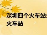 深圳有四个主要的火车站,其具体位置如下:1 深圳站:位于罗湖区。2 深圳北站:位于龙岗区,是深圳地铁的一个枢纽站,服务于高铁与地铁 浏览全文>>