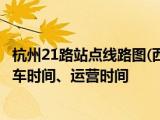 以下是杭州21路公交车的基本信息:* 站点线路图(西湖体育馆至第二长话枢纽大楼):具体的站点线路图可以在杭州本地公交网站或相关地图应 浏览全文>>
