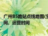 以下是广州B5路的站点线路图、首末车时间及运营时间:站点线路图(宝岗大道总站-黄埔港总站):1 宝岗大道总站2 南田西站3 省人民医 浏览全文>>