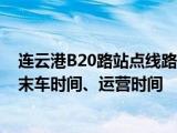 连云港B20路公交车连接了体育中心(BRT)和连云区政府两个重要地点,以下是具体的站点线路图、首末车时间和运营时间:站点线路图:连云港B2 浏览全文>>