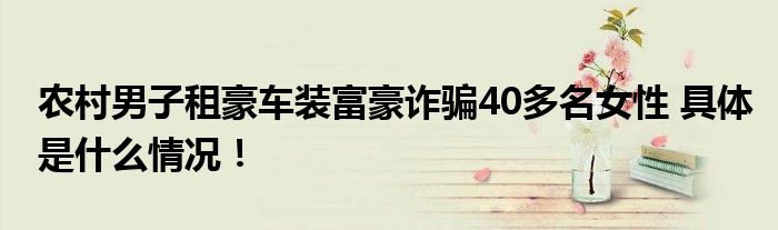 农村男子租豪车装富豪诈骗40多名女性 具体是什么情况!