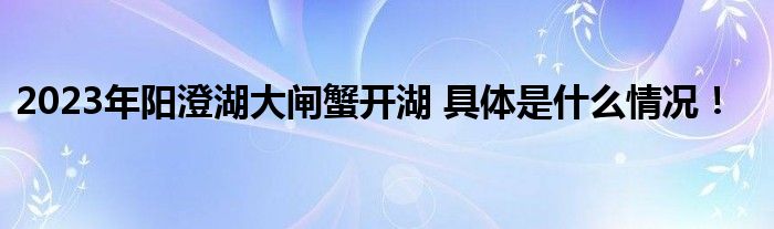 2023年阳澄湖大闸蟹开湖 具体是什么情况!