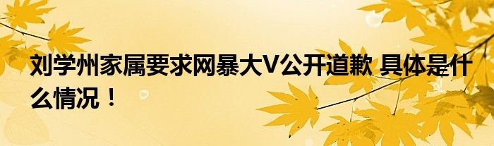 刘学州家属要求网暴大V公开道歉 具体是什么情况!