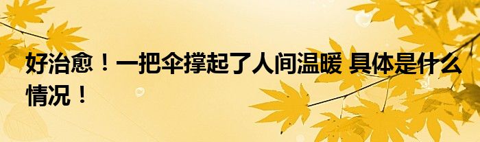 好治愈!一把伞撑起了人间温暖 具体是什么情况!