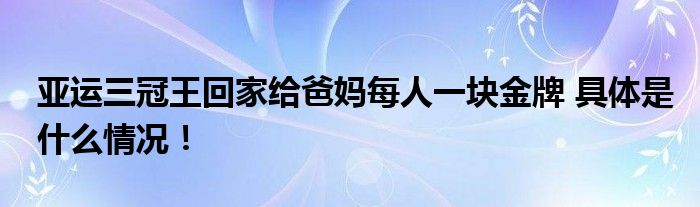 【亚运三冠王回家给爸妈每人一块金牌】!!!今天受到全网的关注度非常高,那么具体的是什么情况呢,下面大家可以一起来看看具体都是怎么回事吧!