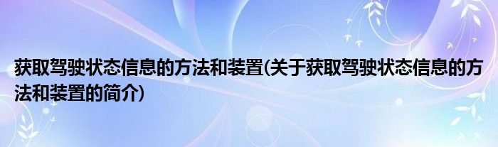 获取驾驶状态信息的方法和装置(关于获取驾驶状态信息的方法和装置的简介)