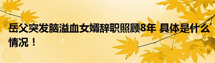 岳父突发脑溢血女婿辞职照顾8年 具体是什么情况!