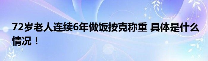 【72岁老人连续6年做饭按克称重】!!!今天受到全网的关注度非常高,那么具体的是什么情况呢,下面大家可以一起来看看具体都是怎么回事吧!