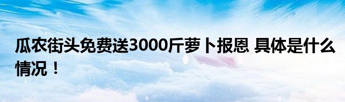 【瓜农街头免费送3000斤萝卜报恩】!!!今天受到全网的关注度非常高,那么具体的是什么情况呢,下面大家可以一起来看看具体都是怎么回事吧!